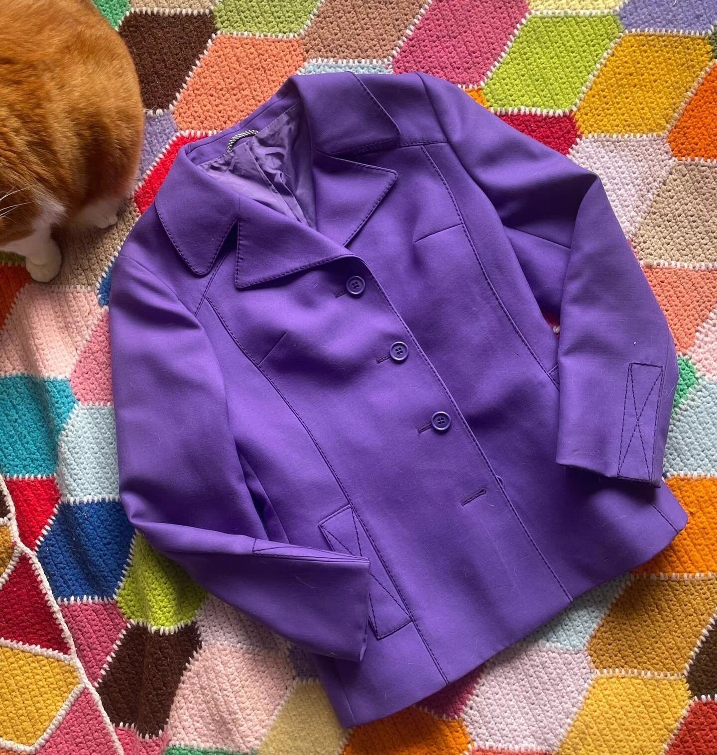 For dandies and the well respected man about town π¬vtg 60βs electric purple psych blazer with four matching buttons running up the front, also has pockets.