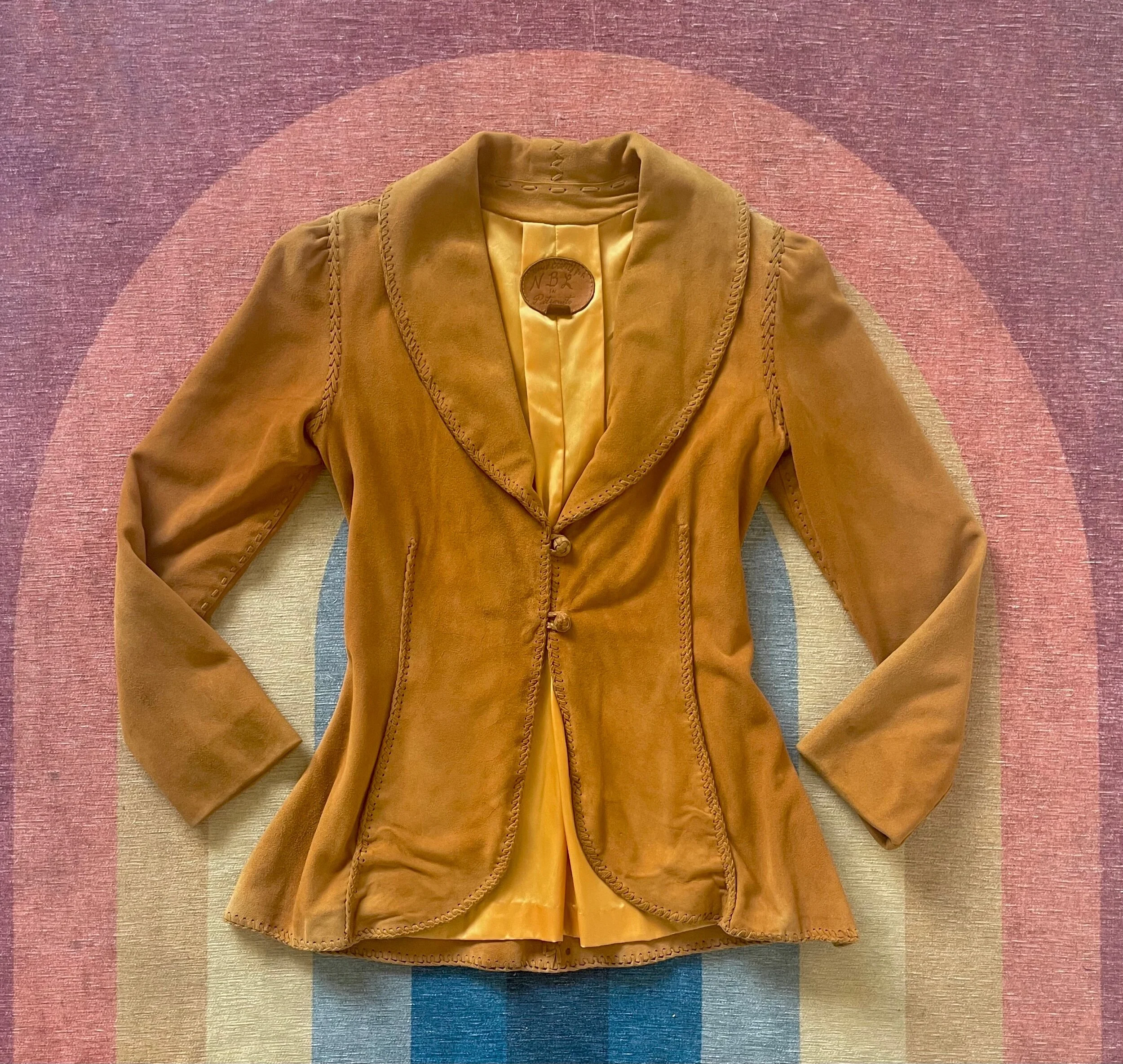 Vtg 70’s ultra soft suede jacket by North Beach Leather in Pitiquito. Matching suede whip stitching throughout, truly a collectors piece! Such a beautiful and flattering cut, I love the broad collar. So so incredibly beautiful!