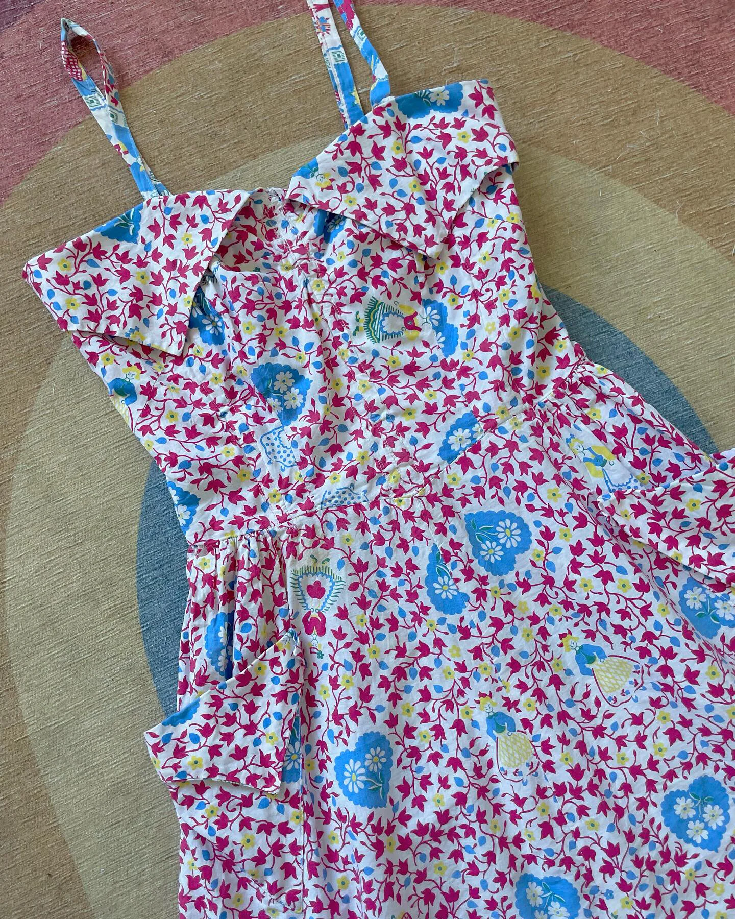 vtg 70βs folk print dress with a boned bodice! Cinches the waist and lets out at the skirt, cute little pockets for your magickal items you collect along your journeys and such! Perfect for adventuring women on the go