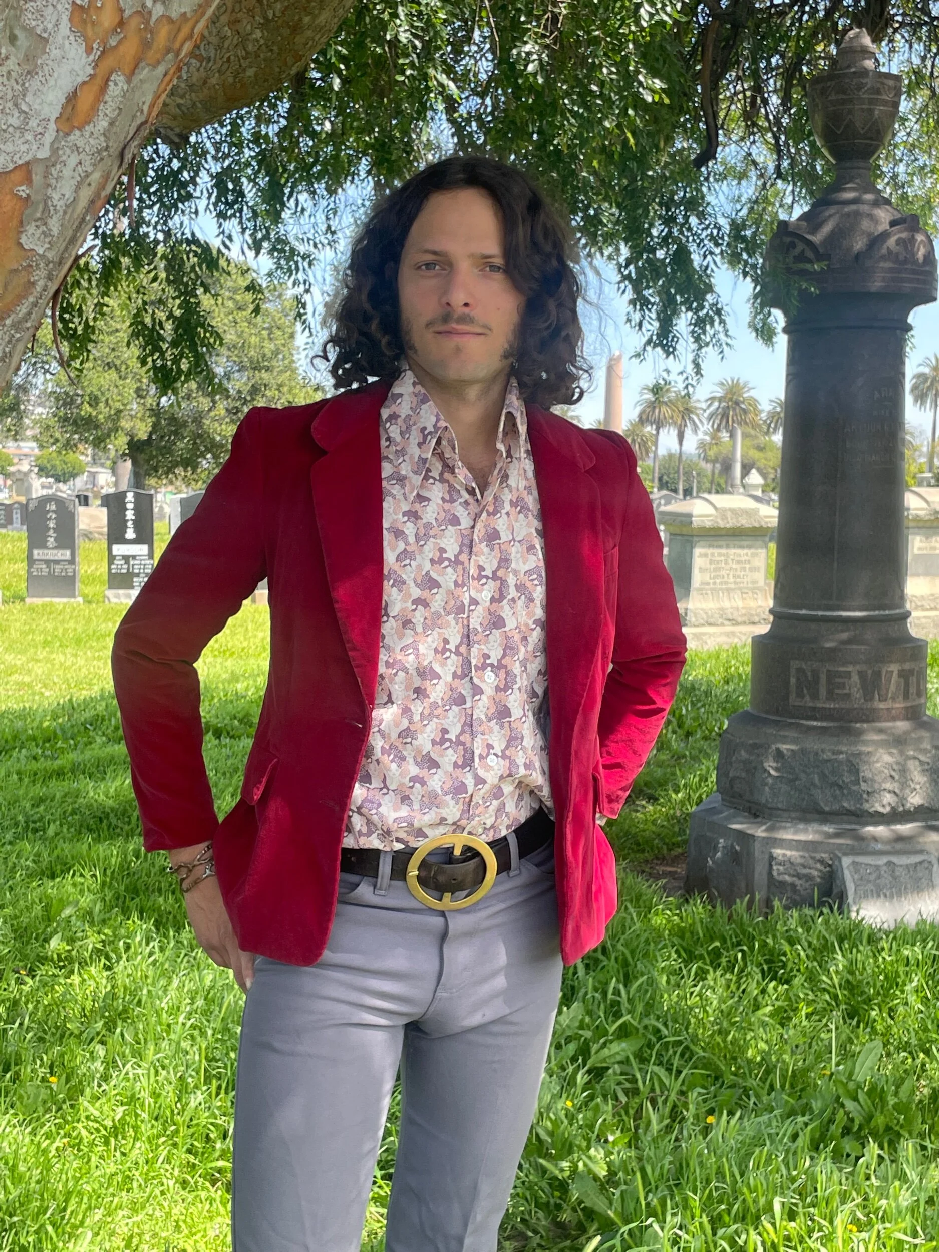 60’s dark red velvet jacket with a pocket on the breast, classic staple.