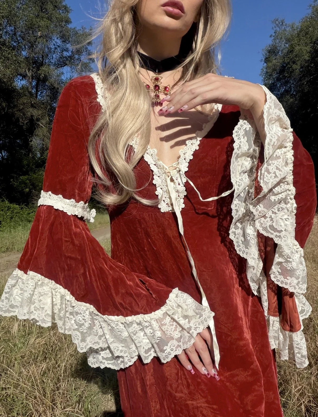 Shop › Mother of Evil Dress Image 1 of 2 Image 2 of 2 Mother of Evil Dress $250.00 sold out Vtg 60’s burnt orange and white angel sleeve dream dress with lace up detailsBust 36Length 52 Sold Out Added! Vtg 60’s burnt orange and white angel sleeve dream dress with lace up detailsBust 36Length 52