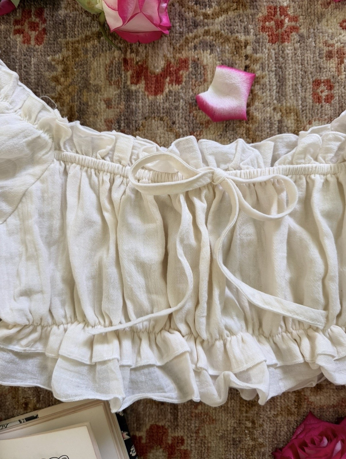 Vtg 80’s cropped cotton top with beautiful puff sleeves and a tie bow